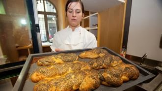 Alcune delle parole chiave sono strudel di mele con pasta lievitata e ripieno di uvetta e cannella come si fa in Polonia; torta di miele (dolce tipico del capodanno ebraico); il «Farsburg» (un pasta lievitata ripiena di semi di papavero) e ancora le rose di pasta lievitata con crema alle mandorle e pere. Sono dolci – ci spiace per chi parte con il salato – che sanno sorprendere per consistenza e sapore.