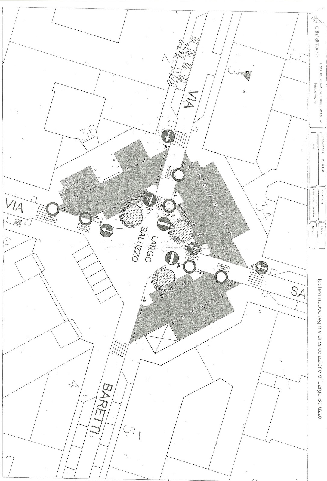 Qui di seguito il progetto per piazza Saluzzo semi-pedonale: