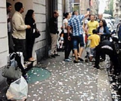 Volano biglietti da cinque, da dieci, da venti. Ma anche tanti da cinquanta. Decine di banconote piovono dal cielo, la voce si sparge, la folla si accalca, cerca di accaparrarsi i pezzi migliori. Pezzettini, in realtà, da ricomporre come in un un puzzle. Perché la benefattrice che ieri pomeriggio ha fatto gridare al miracolo in San Salvario, prima di lanciarlo, ha ridotto il denaro in coriandoli.
