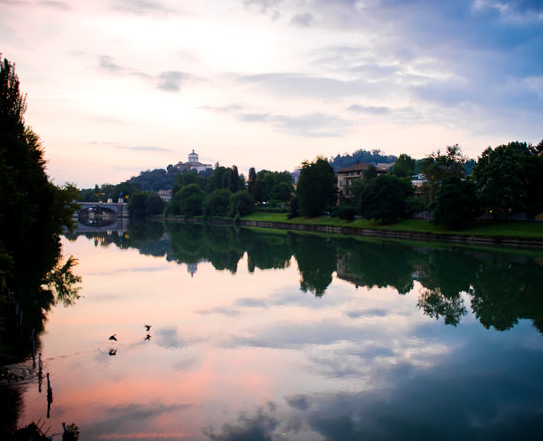 5.19. In giro ci siamo solo noi e un gruppetto che canta intorno a una chitarra, all’altezza dell’Imbarchino, qualcosa di cui trattengo il suono ma non il senso. Il Castello del Valentino illuminato ricorda uno di quei maestosi castelli francesi costruiti sulle rive della Senna o dell’Oise. Il 52 attraversa il ponte Umberto I. Cinguetti, trilli e strida si rincorrono, come all’interno di una gigantesca voliera, mentre a est, dietro i Cappuccini, il cielo schiarisce con screziature grigio-rossastre. Cerchiamo di intercettare un pescatore, un proprietario di cane, un uomo che fa jogging, ma non c’è niente da fare. E così di questa notte rimane in testa soprattutto Angelo, che ha portato un barcone enorme da Genova a Torino per farci un ristorante sul Po. Sembra Fitzcarraldo questa storia.
