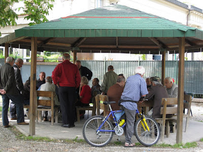 Poco più in là, in un piccolo gazebo, decine di persone seguono le avvincenti partite a carte.