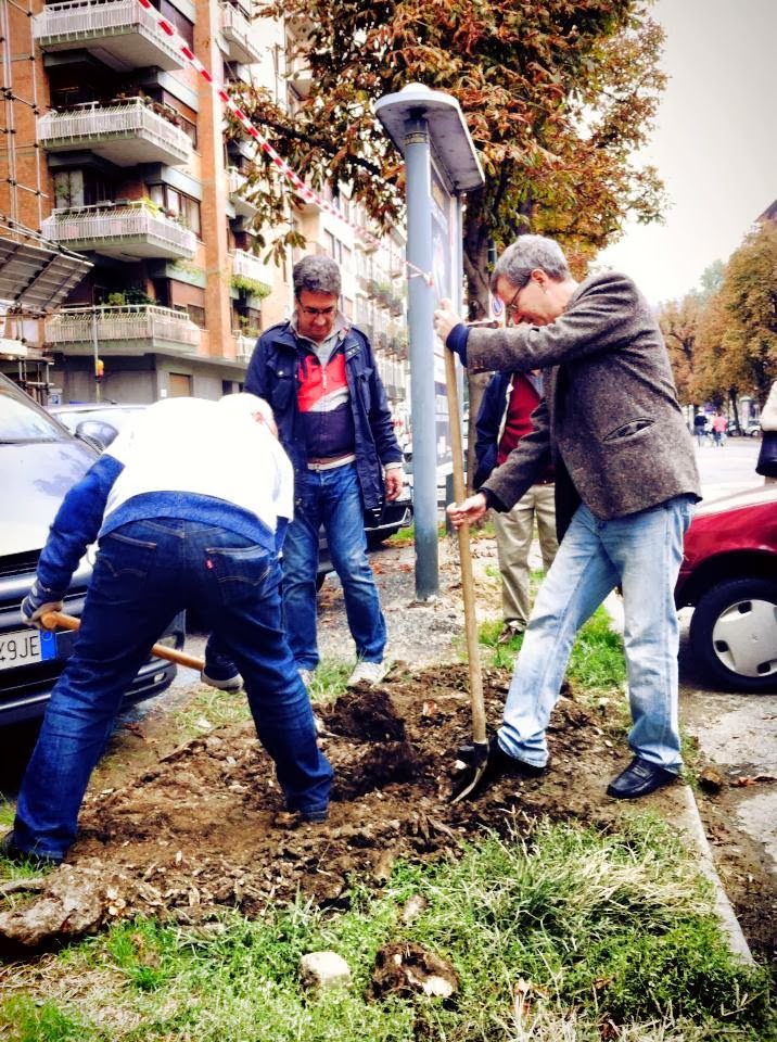 Il caso di corso Marconi infatti è esemplare: è il più antico viale alberato di Torino, e alcune fonti lo datano a prima del 1600. Unisce due architetture monumentali dei Savoia, come il Castello del Valentino e la chiesa di San Salvario. E’ situato al centro di uno dei borghi storici di Torino, il nostro quartiere di San Salvario. Alcuni suoi alberi sono antichissimi, risalgono addirittura a fine 1800. E invece di essere valorizzato, curato, tutelato, sfruttato anche ai fini turistici, si è deciso di fare tabula rasa e di costruire un bel parcheggio sotterraneo privato, costruito da privati e venduto a privati, abbattendo più di 50 alberi. L’unica magra consolazione è la riqualificazione superficiale, realizzata con ascensori a forma di foglia e pavimentazione con gigli di francia.