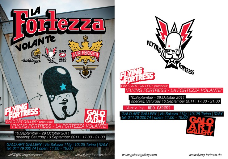 Flying Fortress, artista di Monaco di Baviera ha iniziato a fare graffiti nei primi anni 90.Dopo un po’ di anni passati a fare graffiti ha sentito l’esigenza di passare a uno studio più grafico della sua icona.