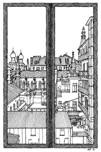 Ultimamente sta uscendo su La Stampa una collezione di disegni assai curiosi. Si tratta di finestre, o meglio della vista che si ha attraverso una finestra. Il tutto per narrare questa città, Torino, e come viene vista da dentro le case dei torinesi.