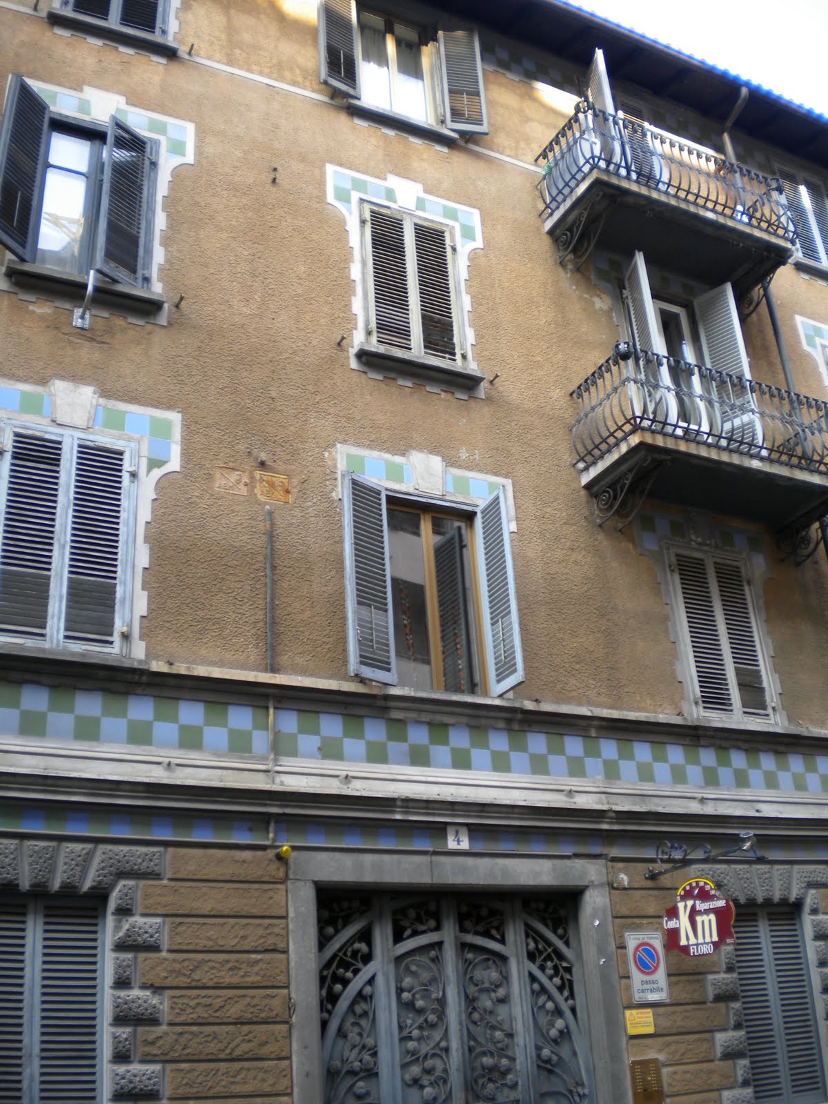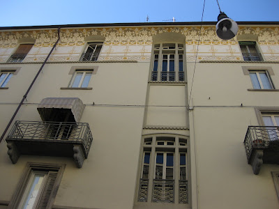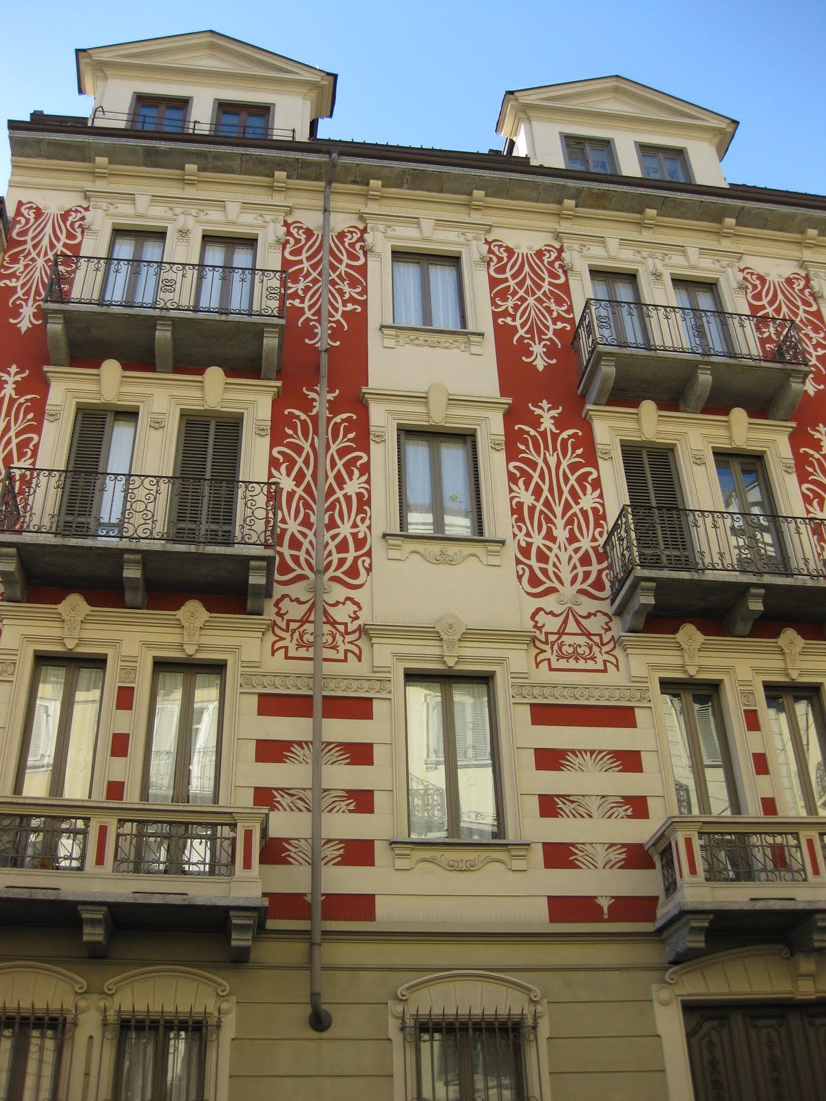 La “casa rossa”, purtroppo irrimediabilmente sfregiata da una sopraelevazione oscena, è opera di Giovanni Gribodo, altro maestro del liberty.