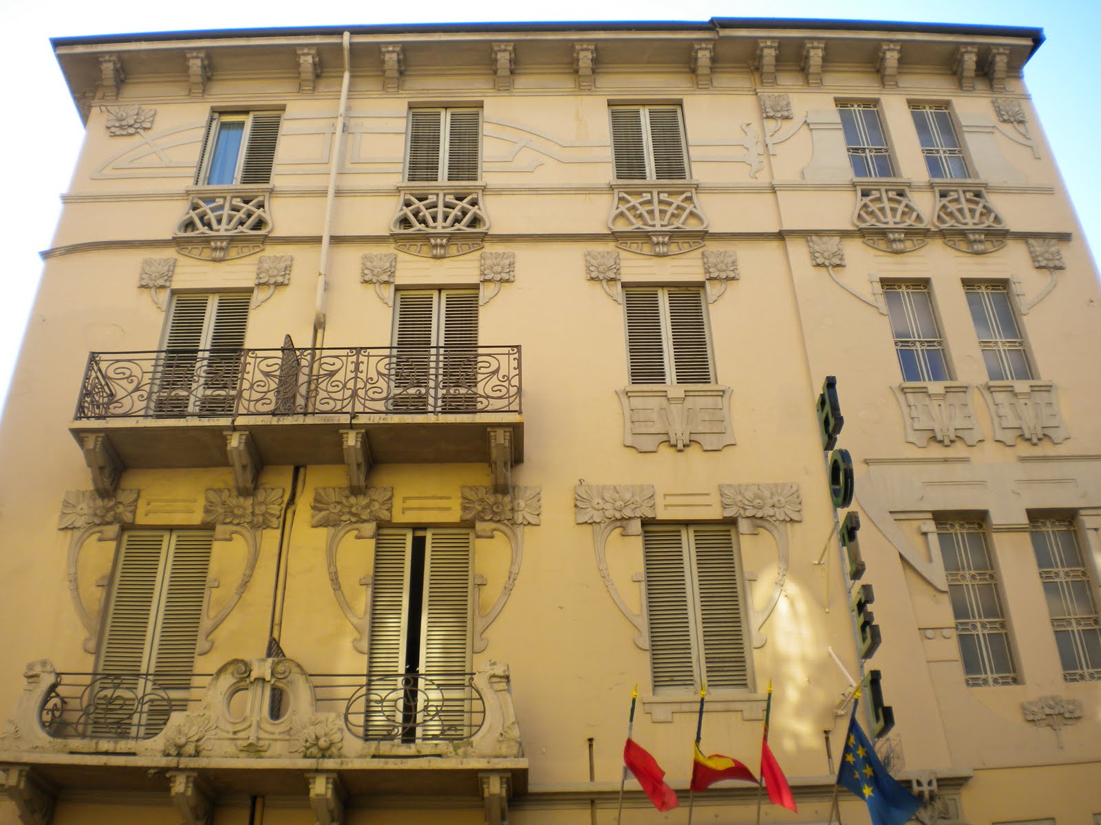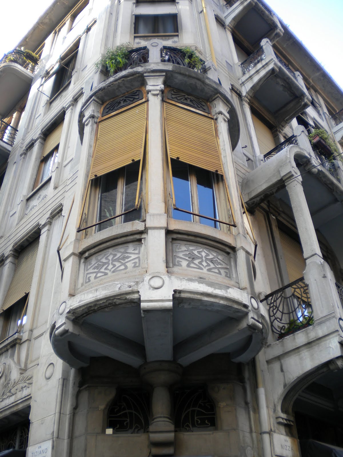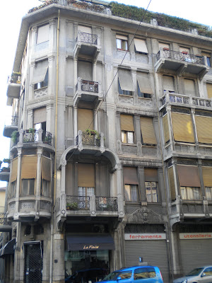 Una delle prime costruzioni in cemento armato col metodo Hennebique, risale al 1904, realizzata dall’ ing. Daniele Donghi con Lorenzo Parrocchia. Si trova in via Nizza angolo via Tiziano. Ad oggi lo smog cittadino e l’ incuria lo ha reso un po’ triste. Molto particolare l’ esile struttura in cemento a vista dei balconi e del bovindo.