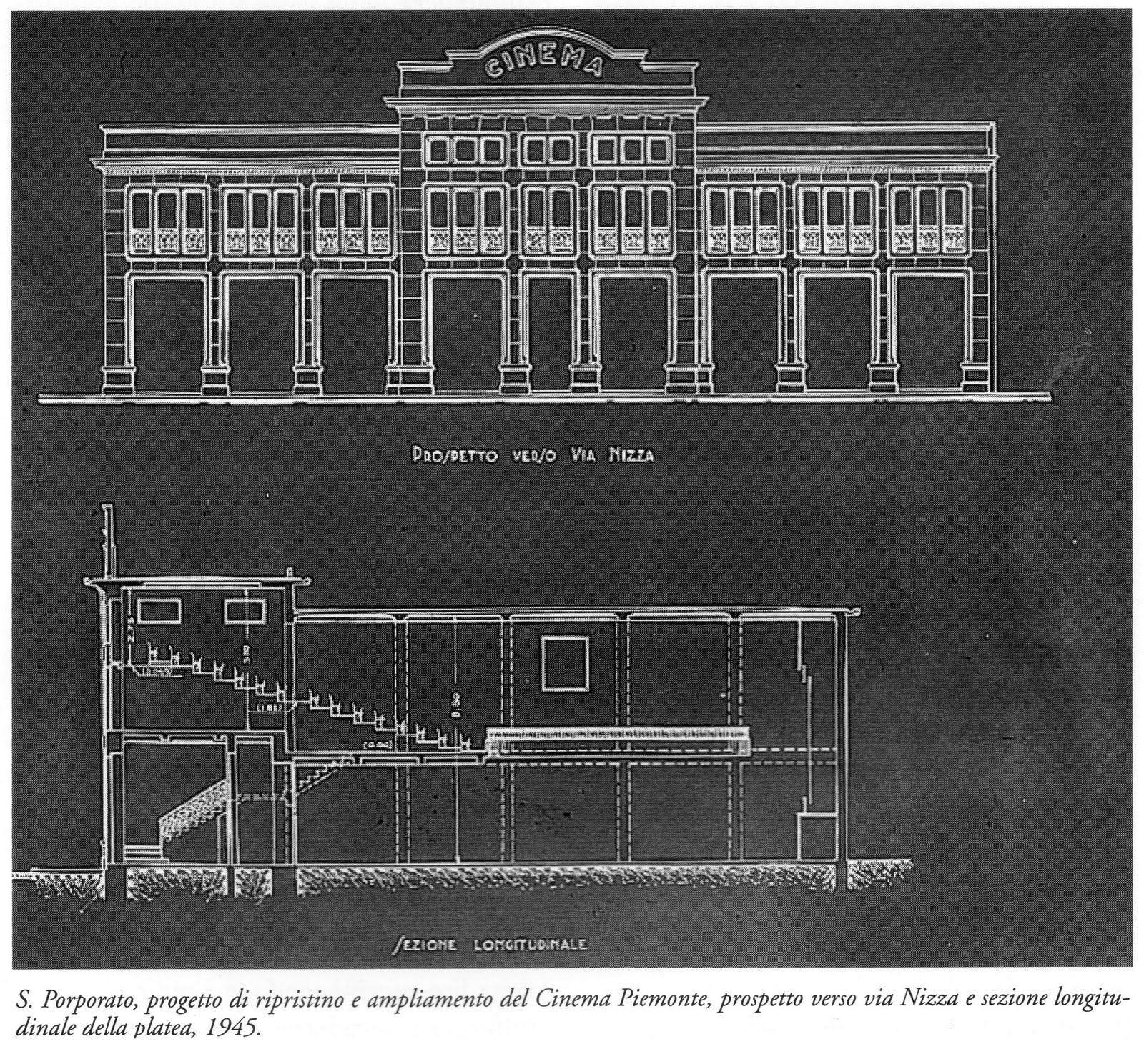 L’ edificio, allora riprogettato dall’ ing. Silvio Porporato, professionista di consolidata esperienza, [fusion_builder_container hundred_percent=”yes” overflow=”visible”][fusion_builder_row][fusion_builder_column type=”1_1″ background_position=”left top” background_color=”” border_size=”” border_color=”” border_style=”solid” spacing=”yes” background_image=”” background_repeat=”no-repeat” padding=”” margin_top=”0px” margin_bottom=”0px” class=”” id=”” animation_type=”” animation_speed=”0.3″ animation_direction=”left” hide_on_mobile=”no” center_content=”no” min_height=”none”][…] si dilatava nell’ orizzontalità della sua inconfondibile facciata, ove il coronamento fungeva da insegna e réclame.