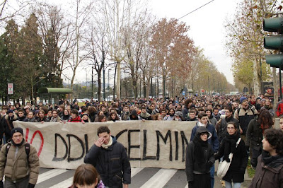 Ieri mattina un gigantesco corteo partito dal Politecnico di Torino ha invaso il quartiere mettendo in subbuglio il traffico in tutta la città.