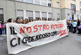 Ecco l’ennesimo caso di degrado e sicurezza nell’edilizia scolastica pubblica: al Regina Margherita, in via Valperga Caluso, gli studenti da anni lamentano l’inadeguatezza degli spazi e la pericolosità delle vecchie aule. Ed ecco che venerdì scorso un vetro si è staccato dai vecchi infissi anni Trenta delle finestre ed è precipitato nel cortile della scuola. La manutenzione, probabilmente, non viene fatta da decenni. In seguito all’episodio, che poteva risultare fatale, la preside dell’Istituto ha disposto la chiusura del cortile, l’unico spazio aperto a disposizione della scuola. Questa mattina però gli studenti hanno dato via a un corteo molto partecipato che, attraversando le strade di San Salvario e del Centro, è arrivato a occupare un altro cortile, questa volta agibile, quello del palazzo della Provincia, in via Maria Vittoria. Per dire ancora una volta, forte e chiaro, che non è possibile studiare e crescere in un luogo insicuro e pericolante.