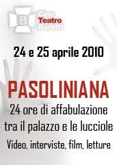 • Durante la manifestazione sarà presente uno spazio nel foyer del Baretti dedicato alla la vendita di libri di e su Pasolini, in collaborazione con la libreria Gulliver – www.libreriagulliver.it