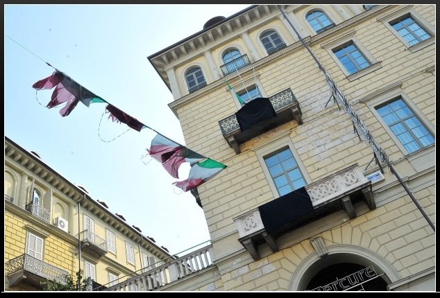 Drappi neri come ai funerali. I portici di via Nizza bardati a lutto per dire che sono ormai uno dei punti morti della città. Un segnale estremo deciso dai residenti e dai commercianti per dare una scossa, per svegliare la politica e chi si dovrebbe occupare del rilancio della zona, polizia municipale e forze dell’ordine comprese.