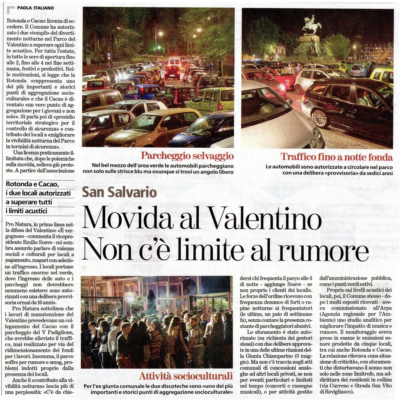 “Movida al Valentino: non c’è limite al rumore”