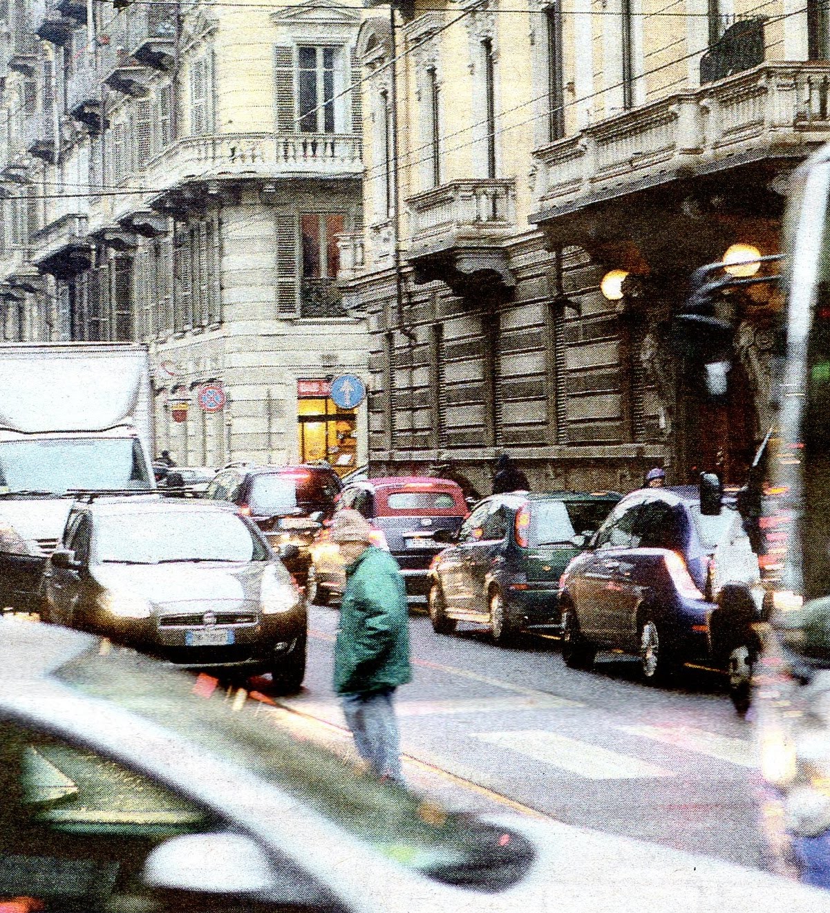 Paradossale è che proprio in quel giardino Addonisio avrebbe voluto installare dei giochi, ma uno studio del Comune identifica l’area come zona “rossa”: troppo inquinata per farci giocare i bambini. Siamo a poche centinaia di metri da via Valperga, dove il traffico è ancora più intenso e dove un progetto per cambiare la viabilità era già stato avanzato anni fa. E cadde nel vuoto. A non gradirlo sono i commercianti. Come Sergio Rampone, che ha un’edicola sull’incrocio, o Gabriella Ferolla, titolare di un’agenzia immobiliare: ammettono che l’aria è irrespirabile, ma osservano: “Traffico vuol dire passaggio di persone, e per noi è un bene”.”